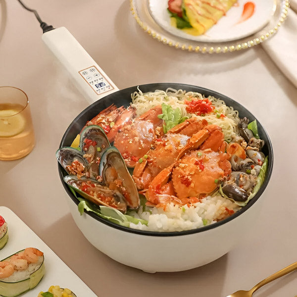 This tigaie electrică este soluția perfectă pentru gătit rapid, acasă sau în deplasare, adaptându-se oricărui spațiu.
